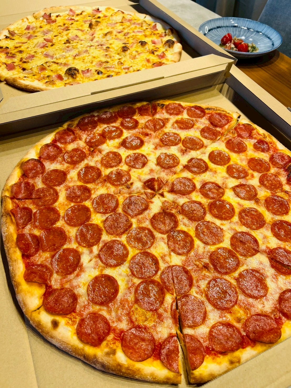 JESUS PIZZA:週末はアメリカンなピザパーティでした。直径50cmでほぼマンホール。ペパロニとハニーベーコン。うんめかったです。 link